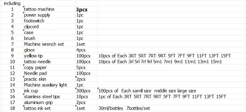 3pcs tattoo machine Kit with tattoo ink