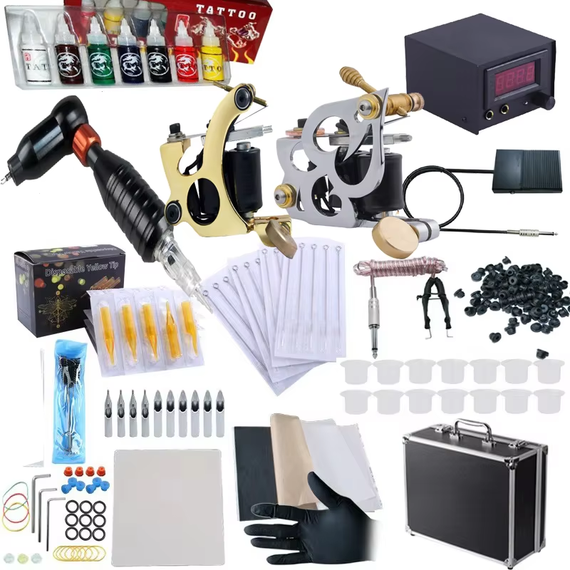 Beginner Tattoo Kits With Bag and Cartridges Display Tattoo Guns Kits Professional Permanent Makeup Body Tattoo Machine