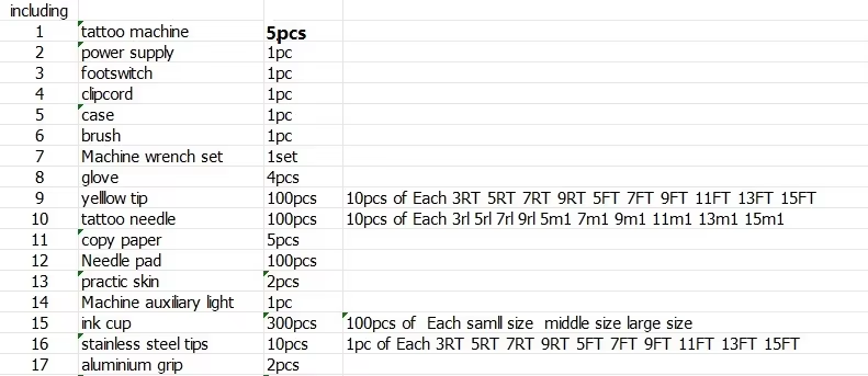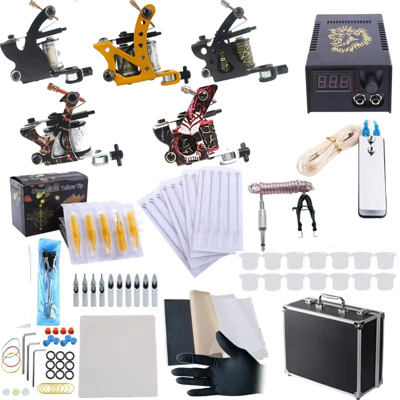 5pcs tattoo machine Kits Complete Tattoo Set with ink for Student