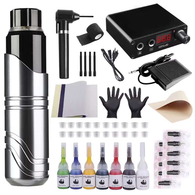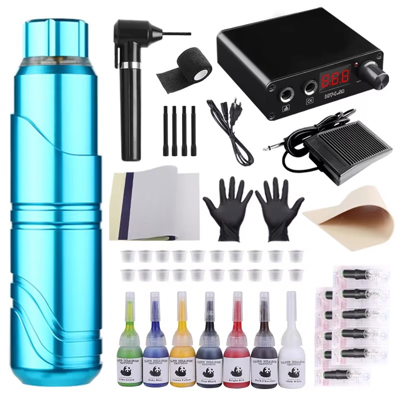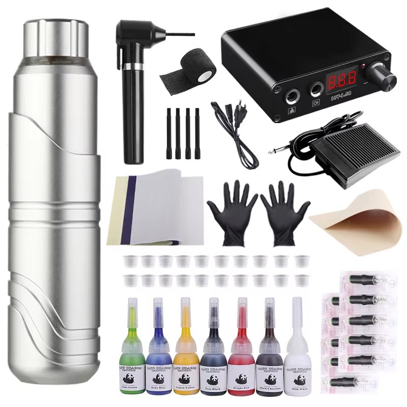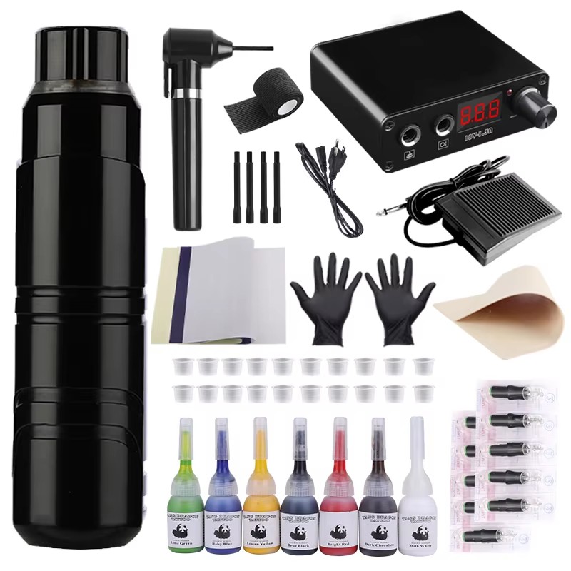 Professional Wireless Battery Complete Tattoo Pen Kit with Cartridge Needles Gloves