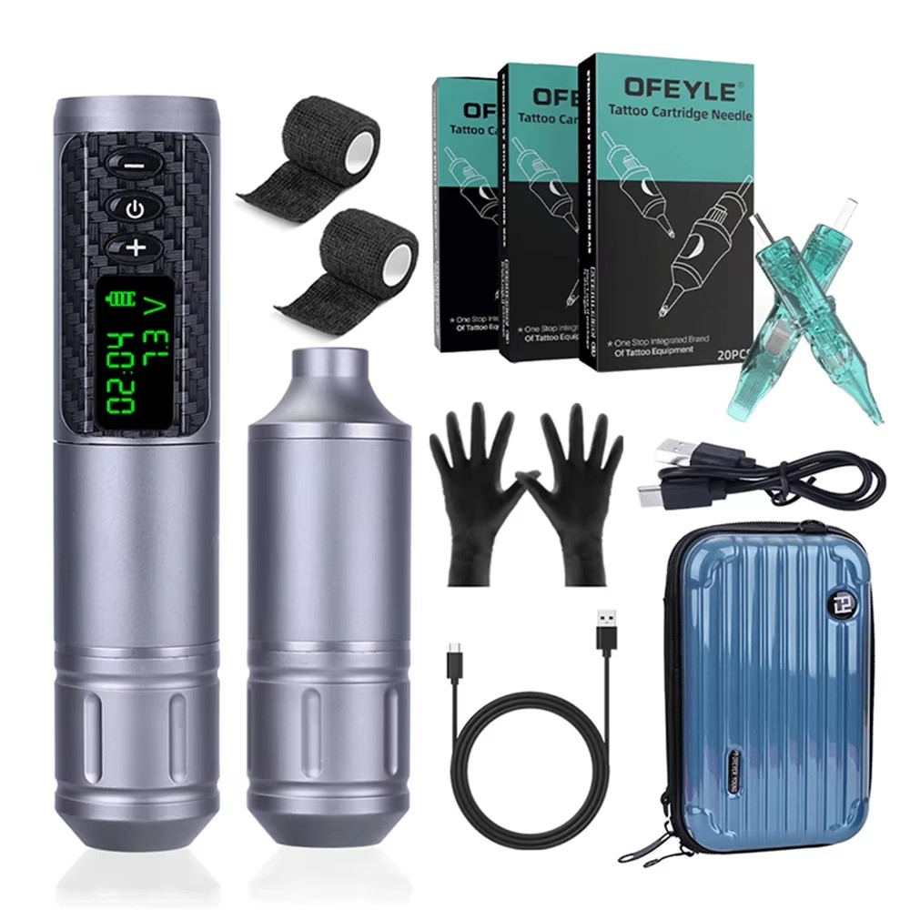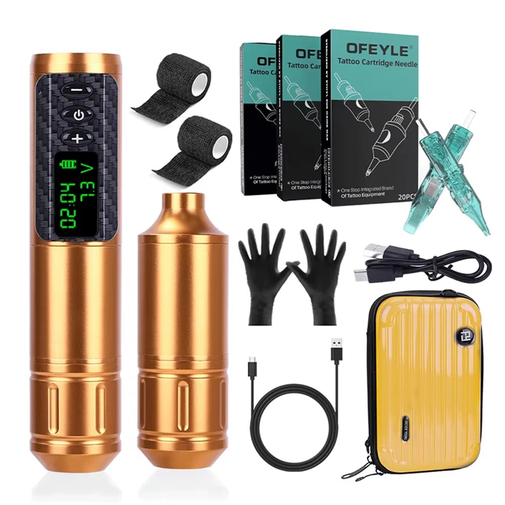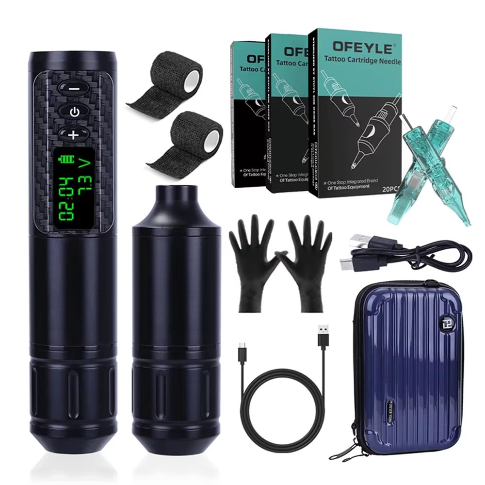 Professional Wireless Battery Complete Tattoo Pen Kit with Cartridge Needles Gloves