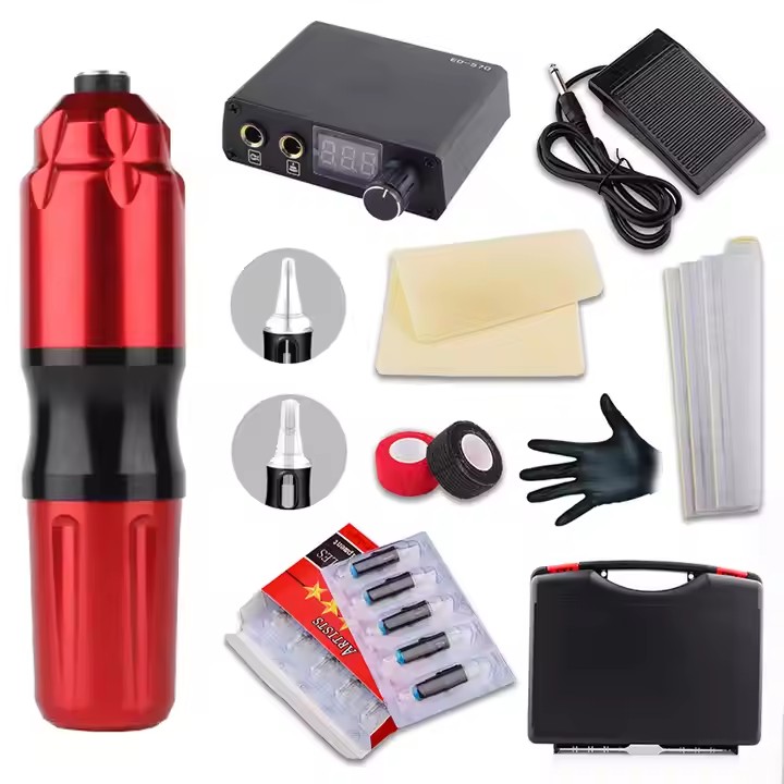 seamoontattoosupply Professional Tattoo Machine kit with cartridge needles