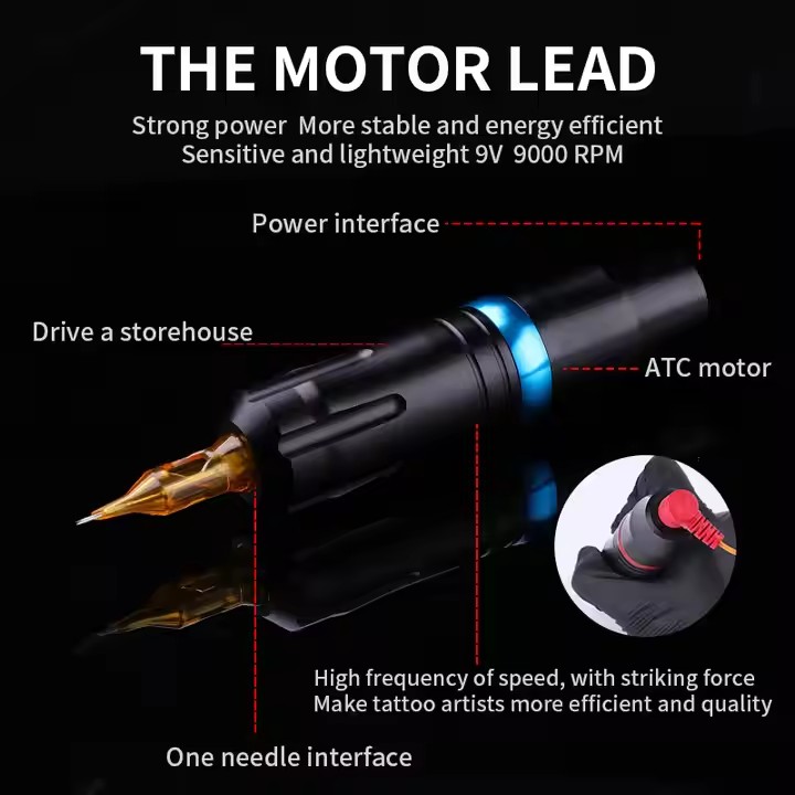 Battery and Plug in Rechargeable thick rotary permanent inkin pen type Body tattoo machine pen wireless