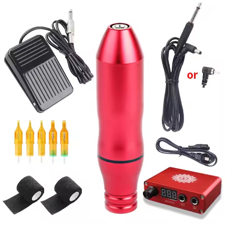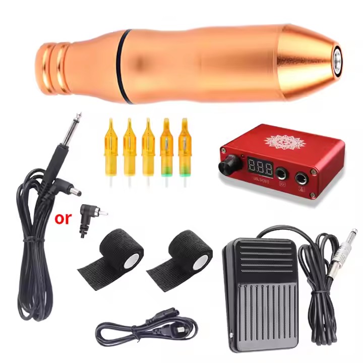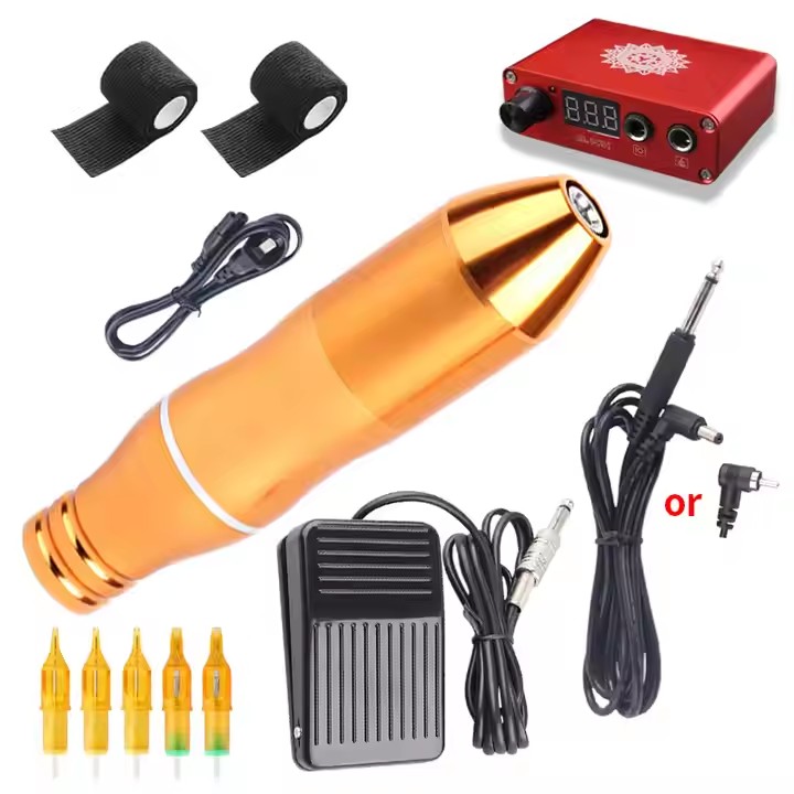 seamoontattoosupply Tattoo Machine Set Complete Short Pen Full Tattoo Kit Body Art Supply power supply tattoo tools