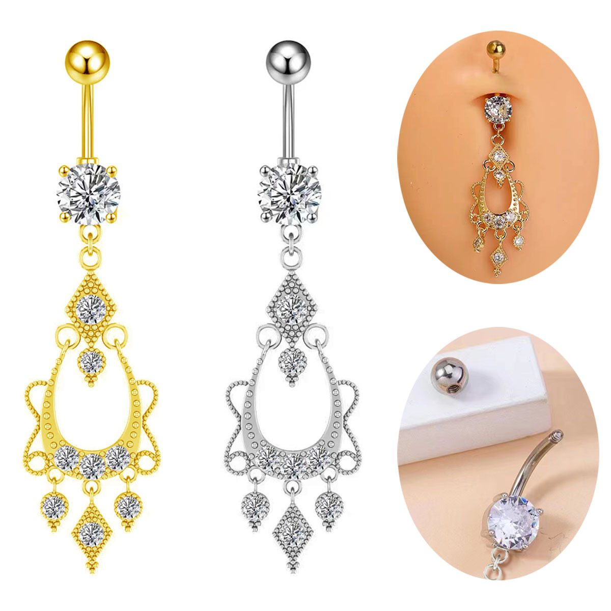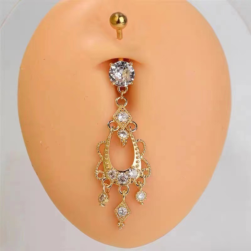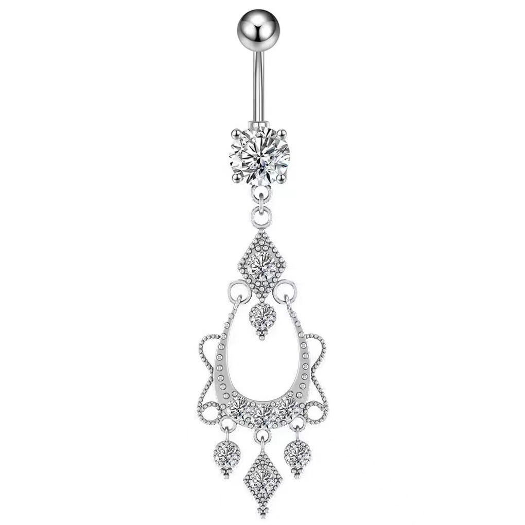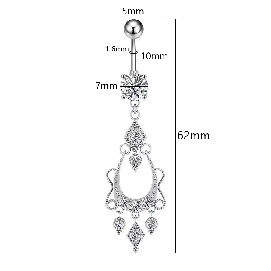 Stainless steel Long zircon navel ring Belly Button Ring Piercing Jewelry