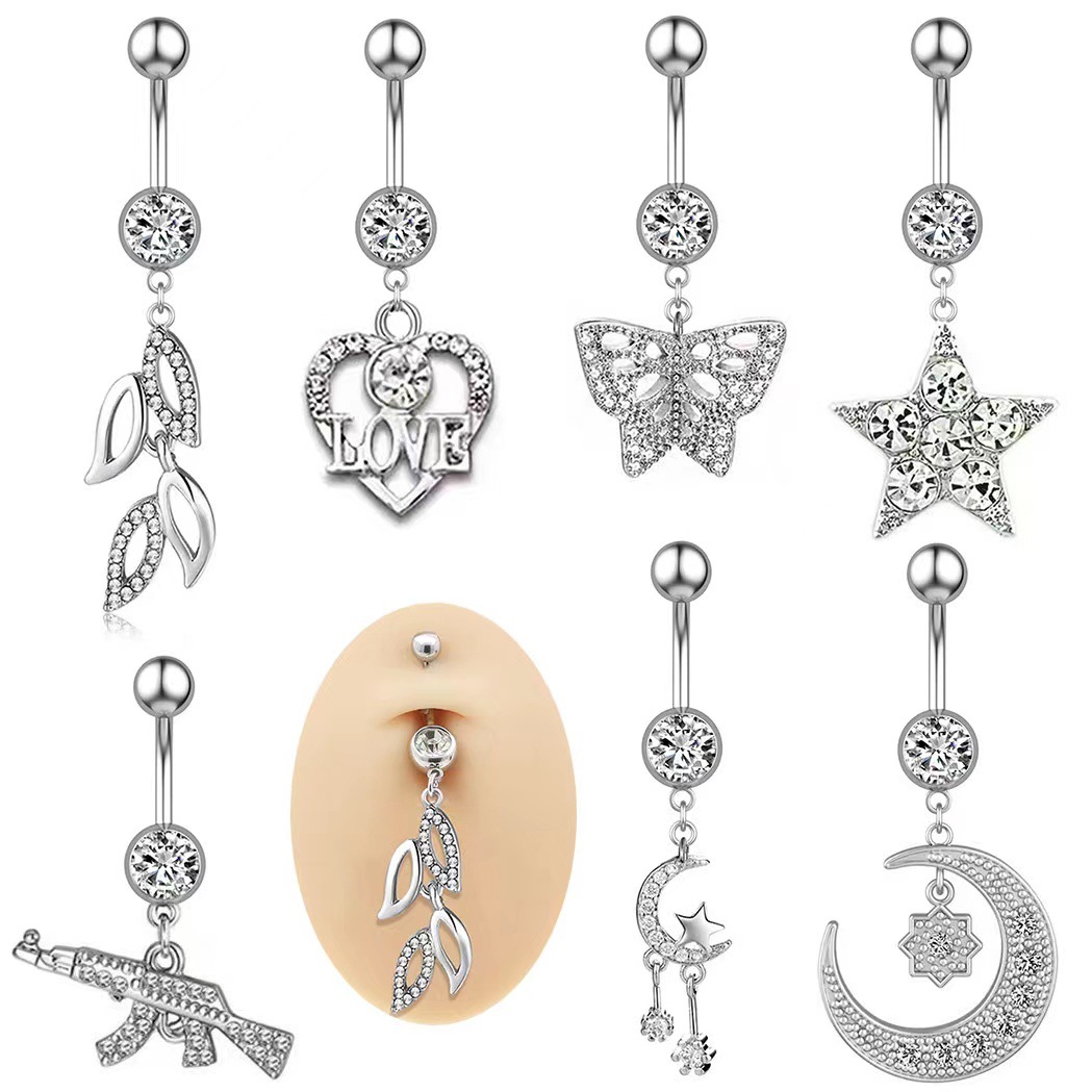 Stainless steel zircon navel ring Belly Button Ring Piercing Jewelry