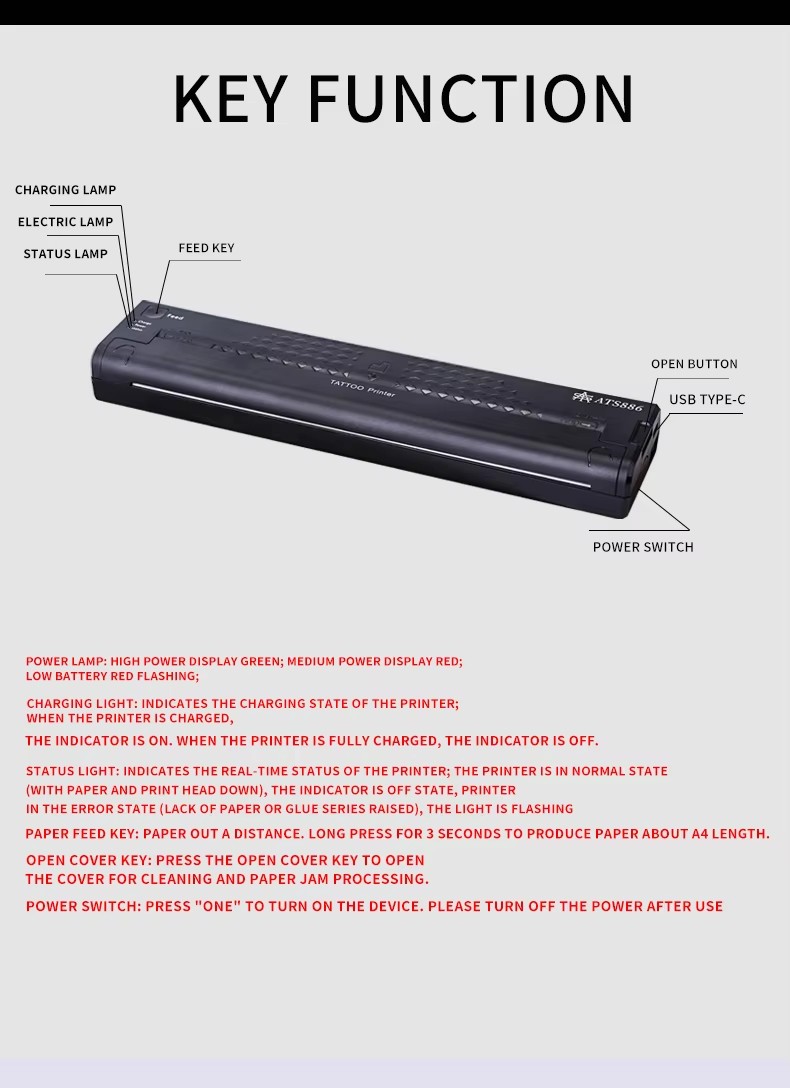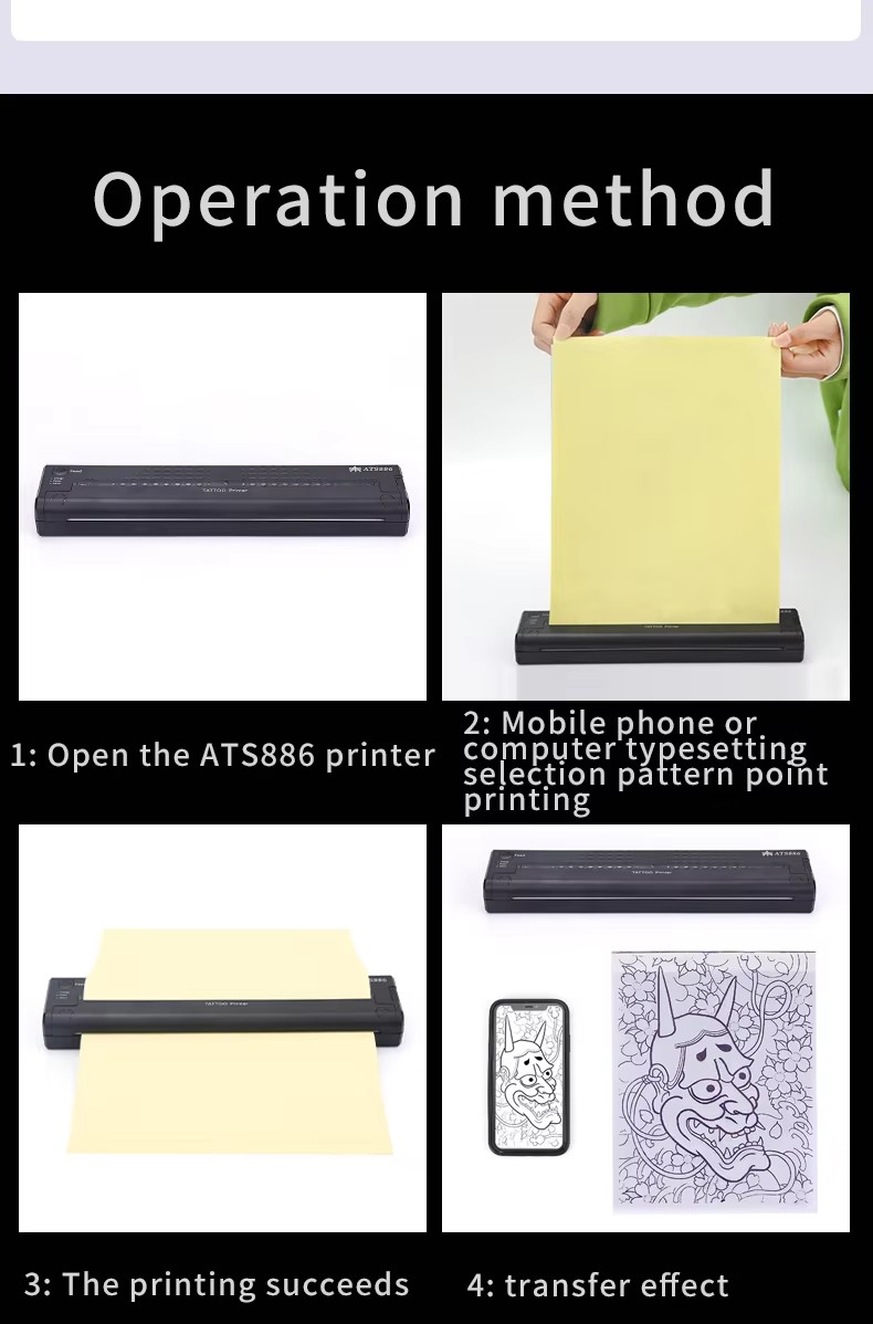 Wireless Battery Tattoo Transfer Printer Portable Machine Clear Transfer Tattoo Stencil Printer Thermal Copier Machine